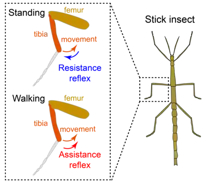 - ↑ Bässler, U. (1976-03-01). "Reversal of a reflex to a single motoneuron in the stick insect Çarausius morosus". Biological Cybernetics. 24 (1): 47–49. doi:10.1007/bf00365594. ISSN 0340-1200. S2CID 12007820.