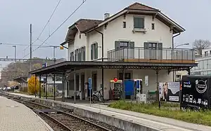 Feuerthalen railway station (German: Bahnhof Feuerthalen) is a railway station in Feuerthalen, in the Swiss canton of Zürich. It is an intermediate stop on the Lake line and is served as a request stop by local trains only.