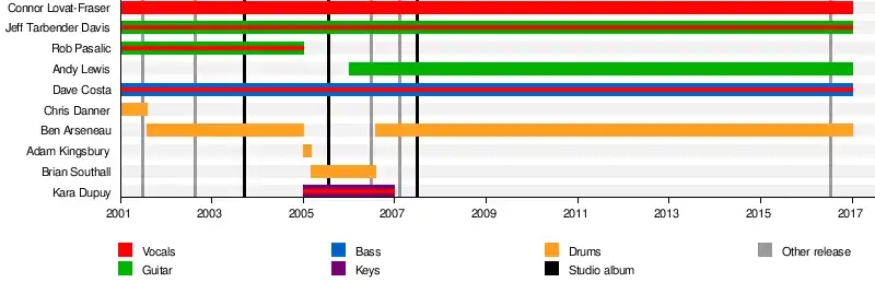 Past members | Connor Lovat-Fraser Jeff Tarbender Davis Dave Costa Ben Arseneau Kara Dupuy Rob Pasalic Andy Lewis Chris Danner Brian Southall Adam Kingsbury |