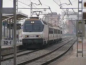 ![]() Renfe Operadora's Estrella "Costa Brava" train hauled by a locomotive 252.040 at the station in 2011. | |