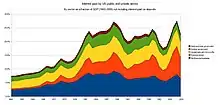 Interest payments on debt by US households, businesses, governments, and nonprofits totaled $3.29 trillion in 2008. The financial sector paid an additional $178.6 billion in interest on deposits.[14]