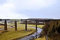 The bridge, which is still in active use,[2] was designated a Category B listed building in 1971.[3] It shares its name with another Findhorn Viaduct which crosses the same river near the town of Forres in Moray.[1]