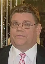 Timo Soini led the Finns Party for twenty years, from 1997 until 2017. He was first elected to the parliament in 2003. He was the party's candidate in the 2006 presidential election, and was elected to the European Parliament in 2009 with the highest personal vote share in the country.[27] He served as an MEP for two years, returning to the Finnish parliament in the 2011 election. Soini was the party's presidential candidate for a second time in the election of 2012.[28] Jussi Halla-aho succeeded Soini as party chairman in 2017.