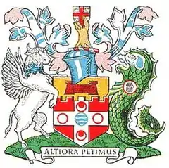 ![]() The arms of the Metropolitan Borough refer to the London Wall and the northern gates | |