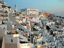 Firá (Greek: Φηρά, pronounced [fiˈra]) is the modern capital of the Greek Aegean island of Santorini (Thera). A traditional settlement,[1] "Firá" derives its name from an alternative pronunciation of "Thíra", the ancient name of the island itself.