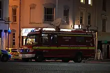 The vehicle carries equipment to support normal fire appliances and crews, typically at prolonged or major incidents.