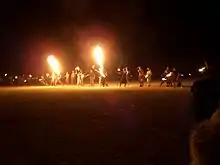 In August 2007 the record for the biggest fire breathing pass was set at the Burning Man festival in the Black Rock Desert, Nevada; a single breath was passed to 21 people before the flame went out.[11]