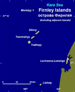 ![]() Location of the Firnley Islands in the Kara Sea | |