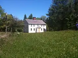 Sherborn | c.1674 | Joseph Morse possibly built the core of this house with his wife sometime around 1674.[80] The residence served as Sherborn's first meetinghouse until a formal church was built in the 1680s. Afterwards, the house fell into the ownership of the Barber family by 1753 and remained under their ownership until the late 19th century.[80] Under their care the house was enlarged in 1814, and was remodeled in Greek Revival-style surface treatments ca.1835.[80] According to the Massachusetts Historical Commission, the home still retains some First Period elements.[80] |