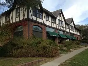 Built in 1922, Antelope grocery was constructed as a mixed use (commercial and apartment) building.[7] The two-story brick and stucco structure makes use of architectural elements common to period houses. The store includes a visual usage of Tudor revival-styled elements within the construction and has undergone multiple renovations while retaining a high degree of architectural integrity. This includes the current existence of its original metal framed store-front windows. The lower level of the building remains business, while the upper level is mainly residential apartments. As far as the exterior is concerned, stucco and half-timber form the cladding which traces up to a truncated steeply pitched roof capped with a flat decking. The main modifications to the building's exterior include re roofing and addition of protective glazing over the transoms.
