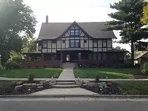 Located within the Mount Emerald and Capitol Additions District, the Reese House was designed by Fiske and Meginnis in 1907.[5] The Reese House was designed with false-timber work and stucco and large overhanging eaves over the porches placing it into the Tudor-Revival/Prairie-Style category that Fiske & Meginnis were known for especially in their residential projects. This residence was designed for Manoah Bostic Reese and his family who was the chief justice of the Nebraska Supreme Court and also the Dean for the College of Law at the University of Nebraska-Lincoln.