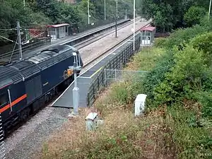 The current station was opened on 1 March 1982[1] as one of series of improvements to local rail services made by the West Yorkshire PTE (Passenger Transport Executive).[2] This replaced the LNER station several hundred metres to the north, which opened as "Fitzwilliam Halt" on 1 July 1937 but fell victim to the Beeching cuts within little more than 30 years, closing on 6 November 1967.[1][3] Unlike its modern incarnation, the original station consisted of a single island platform, accessed from the adjacent road bridge.[2] The line was electrified in 1988.