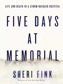 Five Days at Memorial: Life and Death in a Storm-Ravaged Hospital is a 2013 non-fiction book by the American journalist Sheri Fink. The book details the aftermath of Hurricane Katrina at Memorial Medical Center in New Orleans in August 2005, and is an expansion of a Pulitzer Prize-winning article written by Fink and published in The New York Times Magazine in 2009. It describes the events that took place at Memorial Medical Center over five days as thousands of people were trapped in the hospital without power. The triage system put into effect deprioritized critically ill patients for evacuation, and it was later alleged that a number of these patients were euthanized by medical and nursing staff shortly before the entire hospital was evacuated on the fifth day of the crisis. Fink examines the legal and political consequences of the decision to euthanize patients and the ethical issues surrounding euthanasia and health care in disaster scenarios. The book was well received by most critics and won three awards, including a National Book Critics Circle Award for non-fiction.