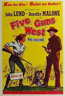 Five Guns West is a 1955 Western film set during the American Civil War directed by Roger Corman. It was Corman's first film as director although he had already made two as producer. It was the second film released by the American Releasing Company, which later became American International Pictures.[5]