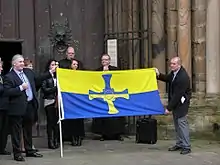 The Flag of County Durham is the flag of the historic county of Durham. It was registered with the Flag Institute as the flag of the county in 2013, after winning an online competition to decide a flag for the county.[1]