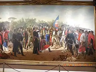 The Flag of the Treinta y Tres pays homage to the military expedition of the Treinta y Tres Orientales (English: "Thirty-Three Orientals"), a militant revolutionary group led by Juan Antonio Lavalleja and Manuel Oribe which fought against the Empire of Brazil during the Brazilian occupation of the Provincia Oriental. The flag was first used during the disembarkation of the Thirty-Three Orientals in Uruguayan territory the 19th of April, 1825, at the beginning of the Cisplatine War.