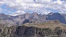 Flagstone Peak (13,456 ft (4,101 m)) is located in the Wind River Range in the U.S. state of Wyoming.[3] The peak is the 12th highest peak in Wyoming.[4] The summit is located on the Continental Divide and is in both Shoshone and Bridger-Teton National Forests. The Flagstone Peak-Southeast Peak (13,160 ft (4,010 m)) lies .25 mi (0.40 km) to the southeast.