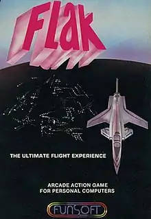 Flak: The Ultimate Flight Experience is a vertically scrolling shooter for the Atari 8-bit family designed by Alain Marsily, programmed by Yves Lempereur, and published by Funsoft in 1984.[1] It was ported to the Apple II, Commodore 64, and ZX Spectrum home computers. Flak was heavily inspired by the 1982 Namco arcade game Xevious. Most critical reviews were middling or harshly negative.