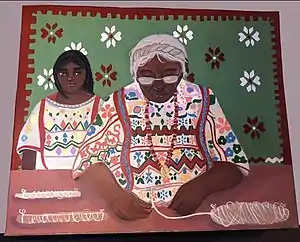 López de Jesús was born into a poor Amuzgo family in Xochislahuaca, in the Costa Chica region of the state of Guerrero, Mexico.[1] Like most Amuzgo girls, she learned to weave cotton garments by watching and imitating her mother starting at age six.[2] When she was fourteen, she went to work as a maid to help the family's finances. She was still able to weave during this time, but not as much as she would have liked. The experience gave her the idea of creating pieces to sell in nearby Ometepec, not just for family use.[3]
