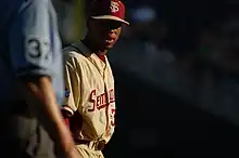 Jameis Winston Heisman Trophy winning quarterback, pitched for the Seminoles from 2013–14