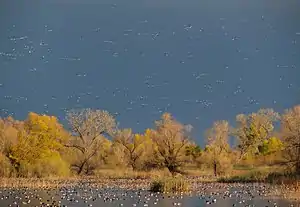 The Central Flyway starts from central Canada and crosses the Great Plains before continuing southwards to the Gulf of Mexico, merging with the Mississippi Flyway. There are no mountain barriers on this route.[1]