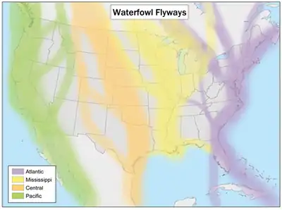 - 1 2 3 "North American Migration Flyways". 16 March 2017. Archived from the original on 16 March 2017. Retrieved 9 May 2019.