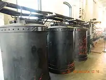 The four large water turbines, some of the largest built up to that time, were made by S. Morgan Smith Works of York, Pennsylvania. There were two small penstocks plus turbines for the two DC generators.