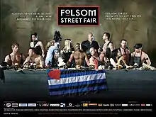 For the 24th annual event held on September 30, 2007, the official poster artwork was a photo featuring well-known LGBT and BDSM community members in festive and fetish attire including Sister Roma "as players in an innovative version of the culturally iconographic" The Last Supper by Leonardo da Vinci, complete with a table draped with the Leather Pride flag and "cluttered with sex toys, whips, and various (BDSM) restraints".[33] The image by FredAlert[34] was used on the official event guide and produced as collector's posters that were displayed throughout the city as advertising for the event. Some conservative religious groups criticized the image as anti-Christian and blasphemous, although media outlets noted that parodies and homages of the Last Supper painting like Renée Cox's Yo Mama's Last Supper are numerous, including ones by The Simpsons, The Sopranos, Phish, That '70s Show, Robert Altman (in the film MASH) and the Boston Red Sox.[35][36] Chris Glaser, a gay clergyman and interim senior pastor at San Francisco's Metropolitan Community Church opined that "they are just having fun" with both the painting and the notion of 'San Francisco values,' and called the poster "tastefully and cleverly done".[34]