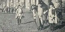 The single reel drama, approximately 1,000 feet long, was released on February 21, 1911.[1] The film was originally set to be released under the title The Patriot Maid of '76.[1] The reason for the title change was due to the release by the Rex Motion Picture Company's A Heroine of '76 on February 16, 1911. Though the film bears similarity in title and character, the plots were entirely different.[1] Rex's film was also the first release by the new company.[4] For the release of this patriotic film, Thanhouser made additional efforts for promoting the film in trade publications. A film still was used as the cover illustration on the February 11, 1911 issue of The Moving Picture News and a full-page still would be included in The Moving Picture World's February 11 issue.[1][note 1]