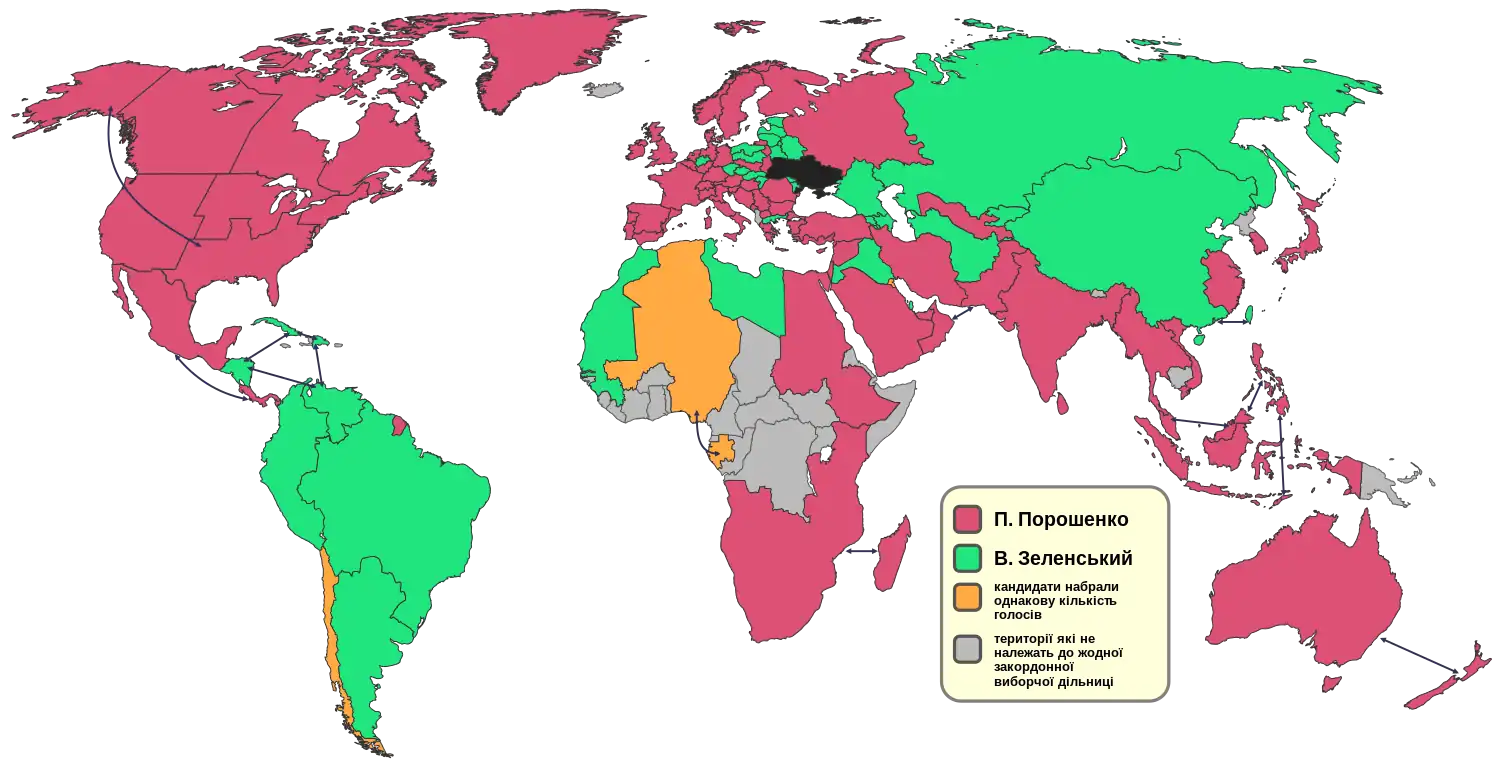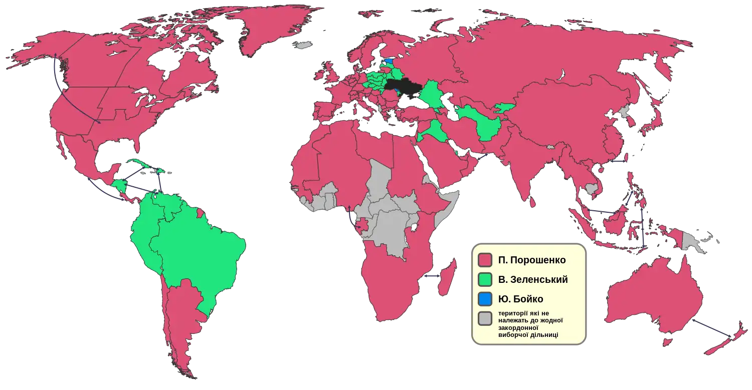 - ↑ 2019 Ukrainian presidential election: Results of voting in polling stations abroad (vote on 31.03.2019) — website of the Central Election Commission (archive)