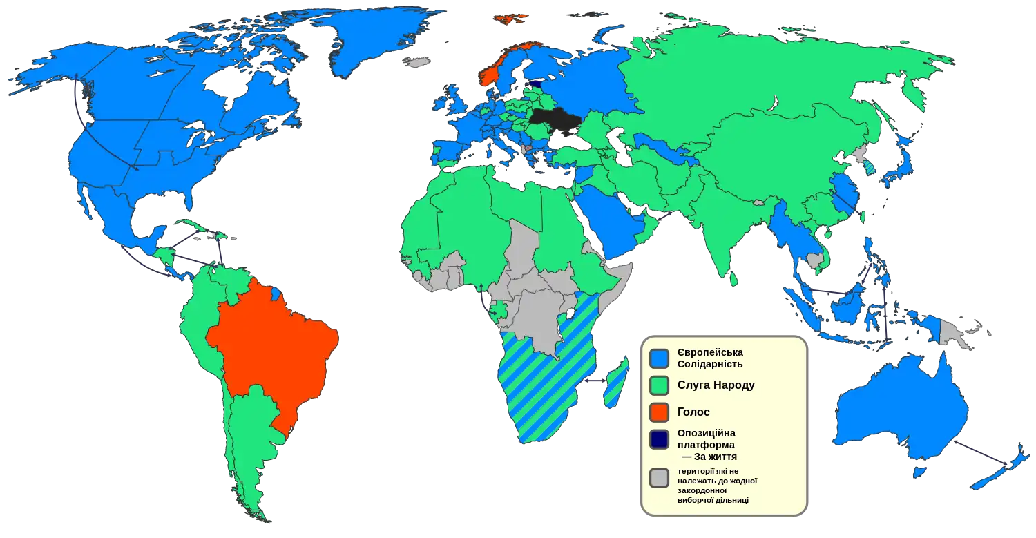 - ↑ 2019 Ukrainian extraordinary parliamentary election: Information about the results of counting of votes in foreign polling stations — website of the Central Election Commission (archive)