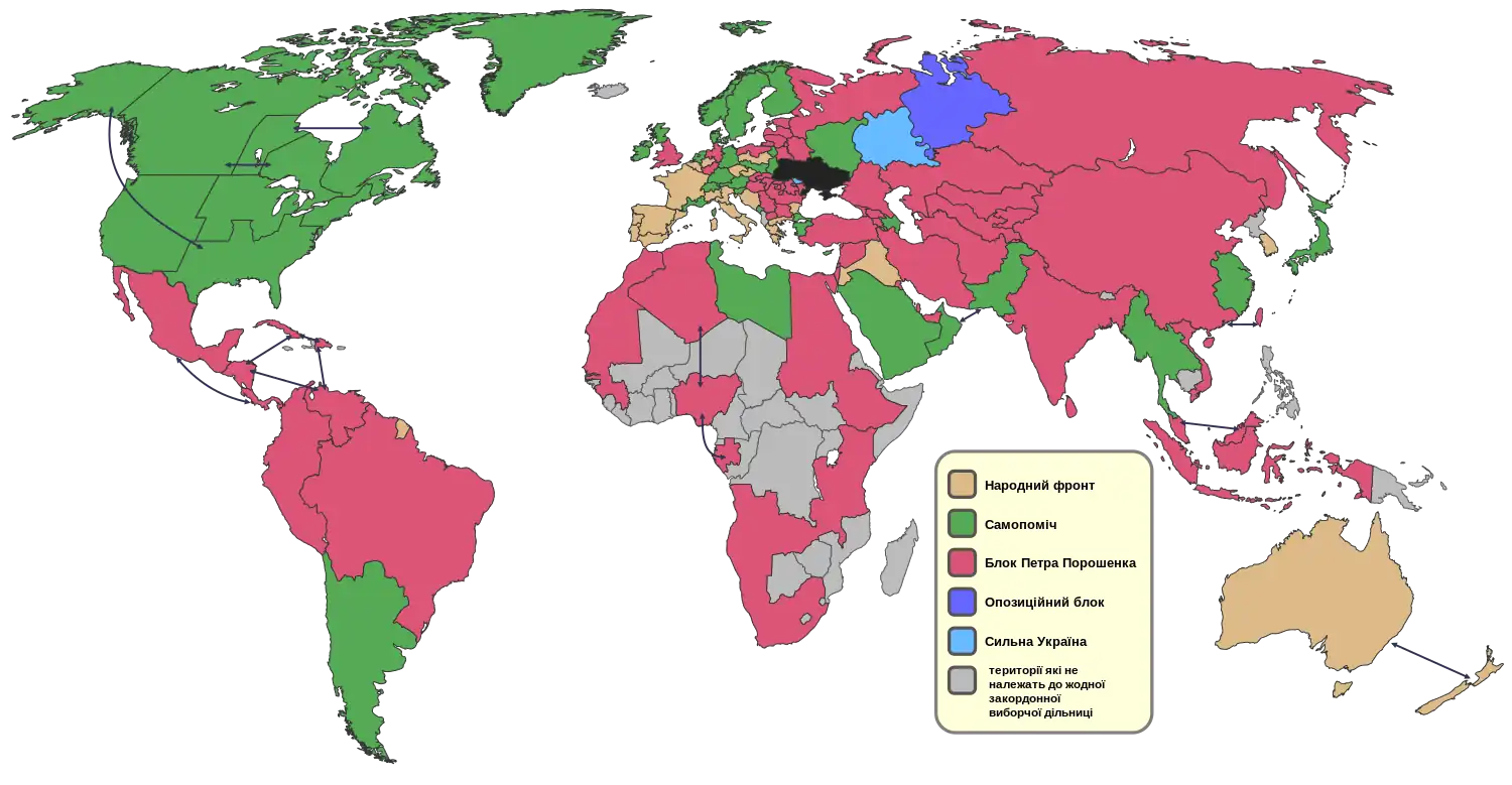 - ↑ 2014 Ukrainian extraordinary parliamentary election: Information about the results of counting of votes in foreign polling stations — website of the Central Election Commission (archive)