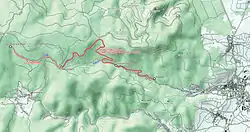 The 6,3 km (3.9 mi) long track started at the Welschbruch forester's house and lead with an average gradient of 7% through several hairpin turns and along the river Kirneck via Fontaine Laquiante to the logging siding 445 m below. From there the logs were transported by oxcarts to the nearby railway station of Barr.[1]