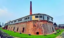 The building was originally a tile factory established in 1899 by the Japanese government.[2][3] Latest technology was introduced to this kiln and after around two decades, the brick production in this factory accounted for around 70% of bricks in Taiwan. Demand for bricks grew exponentially as the economy prospered, thus the government integrated all existing kilns in Taiwan in 1913 to form the Taiwan Renga Company (Japanese: 臺灣煉瓦會社打狗工場). Six more kilns capable of high yield bricks were added and the bricks produced here was branded the Taiwan Renga.[4]