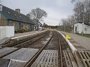Forsinard railway station (/ˌfɔːrsɪnˈɑːrd/) is a railway station serving the village of Forsinard in the Highland council area in the north of Scotland. It is located on the Far North Line, 125 miles 69 chains (202.6 kilometres) from Inverness, between Kinbrace and Altnabreac.[3] The station is managed by ScotRail, who operate the services at the station.