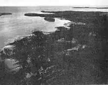 A lime quarry and kiln is located south of the town; this location was likely used to produce mortar for the chimneys. A saw mill was also located north of the town; this may or may not have been contemporaneous with Fort Drummond, but evidence of sawn logs in the fort buildings was confirmed.[12] Some of the islands in Whitney Bay were also used by the fort, with the fort surgeon living on one and another used for artillery target practice.[16]