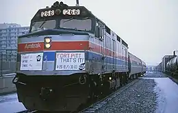The Fort Pitt operated in tandem with the Pennsylvanian, then a PittsburghPhiladelphia service. The westbound Pennsylvanian, after arriving in Pittsburgh in the evening, would be turned around and east to Altoona. The following morning, that trainset returned to Pittsburgh as a westbound Fort Pitt, then ran eastbound to Philadelphia (Pennsylvania) as a Pennsylvanian. This allowed Amtrak and the Pennsylvania Department of Transportation (PennDOT) to operate two routes with the same two equipment sets. A typical consist was three to four Amfleet coaches pulled by an EMD F40PH locomotive.[1] Amtrak added Pitcairn as a stop in mid-1981 to supplement the PittsburghGreensburg Parkway Limited commuter train.[2]