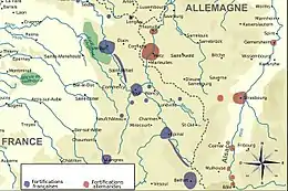 The fortifications of Metz, a city in northeastern France, are extensive, due to the city's strategic position near the border of France and Germany. After the Franco-Prussian War of 1870, the area was annexed by the newly created German Empire in 1871 by the Treaty of Frankfurt and became the Reichsland Alsace–Lorraine. The German Army decided to build a fortress line from Mulhouse to Luxembourg to protect their new territories. The centerpiece of this line was the Moselstellung between Metz and Thionville, in Lorraine.[1]