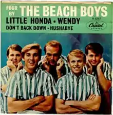 Four by the Beach Boys (stylized as 4-By the Beach Boys[1]) is the first EP by American rock band the Beach Boys, released September 1964 by Capitol Records. It consists of four selections from the album All Summer Long (June 1964). "Wendy" and "Little Honda" received enough airplay to enter the Billboard Hot 100. They peaked at #44 and #65, respectively.[2] Four remains their only EP released in the United States (discounting the Holland bonus EP Mount Vernon and Fairway).