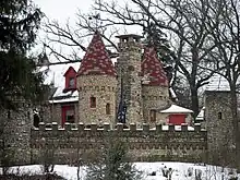 In 1931, Theodore "Teddy" Bettendorf began work on what would come to be known as Castle Vianden, which is located along what is now U.S. Route 14. Being an immigrant from Vianden, Luxembourg, Teddy spent 36 years building his castle in the Luxembourgian style. By 1960, the castle, which was open to visitors, had eight towers, a guard room, bugle tower, castle yard, enclosed sun porch, modern kitchen, garage, dungeon, and a wishing well. Bettendorff continued to add to his castle until his death in 1967. During the 1970s, the castle was rented out as a honeymoon retreat. The castle remains a private residence, but recently the owners of the property have been engaged in an ongoing effort to reopen the property for public enjoyment.[17]