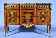 François-Gaspard Teuné (1726 - after c 1788) was a Parisian ébéniste who was made master 19 March 1766.[1] His stamped works are in the Neoclassical style, sometimes, as in the marquetry commode at the Walters Art Museum (illustration) reflecting vestiges of the Rococo in stiffened cabriole legs and the softened transitions between planes. He was one of a number of Parisian furniture makers of German families. He had premises in rue Traversière-Saint-Antoine and then in rue de Charonne. He disappears from the documents at the start of the Revolution.[2]