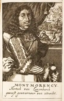 François Henri de Montmorency-Bouteville, Duke of Piney-Luxembourg, commonly known as Luxembourg (8 January 1628 – 4 January 1695), and nicknamed "The Upholsterer of Notre-Dame" (Le Tapissier de Notre-Dame), was a French general and Marshal of France. A comrade and successor of the Great Condé, he was one of the most accomplished military commanders of the early modern period and is particularly noted for his exploits in the Franco-Dutch War and War of the Grand Alliance. Not imposing physically, as he was a slight man and hunchbacked, Luxembourg was nonetheless one of France's greatest generals. He never lost a battle in which he held command.[1]