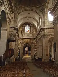 It is now thought that François Le Vau created the initial designs for the Église Saint-Louis-en-l'Île,[24] formerly attributed to Louis Le Vau.[25] Begun in 1664, only the sanctuary and part of the choir had been completed at the time of François's death in 1676. Further construction was carried out by Gabriel Le Duc.[24] In 1667 François created a project for the south portal of the transept of the Cathédrale d'Orléans.[26]