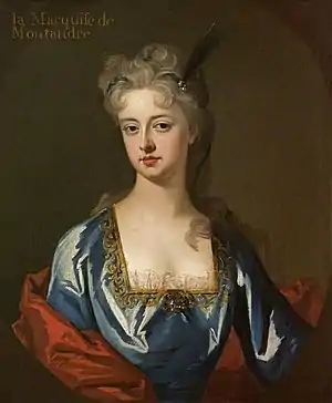 Born the son of Charles-Louis de La Rochefoucauld, 2nd marquis of Montandre of the Doudeauville branch of the family and Madeline-Anne de La Rochefoucauld (née Pithou), de La Rochefoucauld was brought up in France as a Roman Catholic but converted to Protestantism.[1] After arriving in England as a Huguenot refugee in the aftermath of the Edict of Fontainebleau of 1685, La Rochefoucauld joined William III's Army and served under the Earl of Galway during the Williamite War in Ireland.[2] He was commissioned as a brevet lieutenant colonel and given command of Francis du Cambon's Regiment of Foot on 15 February 1692.[2] He went with his regiment to the Low Countries in September 1692 during the Nine Years' War and in 1702 succeeded his brother Isaac, who died without issue, as 4th marquis de Montandre.[3]