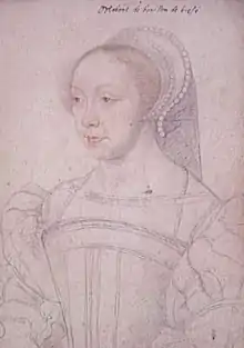 Françoise de Brézé (ca. 1518 – 14 October 1577), Suo jure Countess of Maulévrier, was a French noblewoman and courtier. She served as Première dame d'honneur to Queen Catherine de' Medici from 1547 until 1560 and was the regent of the Principality of Sedan from 1553 to 1559.
