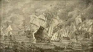 (cf previous citations).— Your loving friend, John Garrett [of Plymouth]. - ↑ It has been suggested that the gathered militia did not, in fact, disperse, and that the fleet made their escape upon seeing the congregation (rather than upon the captain's being injured) (Kelsey 2004, sec. 'Raids on the Spanish main' para. 3, De la O Torres 2020, p. 281).