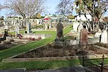 Seafield died on 3 December 1888 from a heart condition.[2] He is buried at the Oamaru Old Cemetery.[5] He was succeeded by his oldest son in the earldom, James Ogilvy-Grant, 11th Earl of Seafield, who at the time was twelve years old.[2] He was fatally wounded in World War I in 1915, and was succeeded in the barony of Strathspey, the baronetcy of Colquhoun and as Chief of Clan Grant by his younger brother Hon. Trevor Ogilvy-Grant.[6] The earldom and the other subsidiary Scottish peerages could be passed on to female heirs, and were inherited by Nina Ogilvy-Grant, 12th Countess of Seafield.[6]