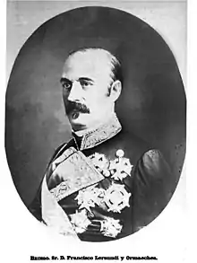 Francisco de Lersundi y Hormaechea (28 January 1817 in Valencia, Spain – 17 November 1874 in Bayonne, France) was a Spanish noble and politician who served as Prime Minister of Spain in 1853 and held other important offices such as Captain General of Cuba from 1866 to 1869.