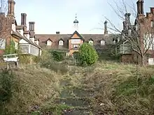 The Frank James Hospital is a currently closed hospital in Adelaide Grove, East Cowes on the Isle of Wight. It was sold by the NHS Trust in 2002 and since then, it has had ownership issues, which has led to its vandalism and disrepair. The building is currently on the endangered buildings list for the United Kingdom.[1] It has a central block with two projecting wings and a verandah to the ground floor on all sides. It is built of red brick, with a tiled roof and has been Grade II listed since 1979.[2]