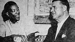 Lane (right) shaking the hand of Bill McGill after he signed with the Chicago Packers in May 1962